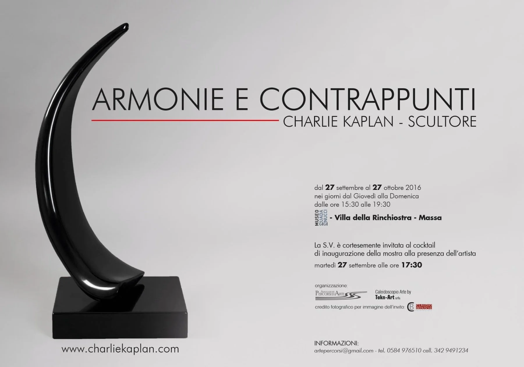 The Museo Gigi Guadagnucci, in Massa-Carrara, Tuscany, presented a solo exhibition of early marble sculptures by Charlie Kaplan as part of its mission to showcase contemporary artists of international acclaim. Kaplan is the only Amerian artist to receive this honor. The accompanying catalogue, featured essays by Massimo Bertozzi and Annette Rose-Shapiro. As Ms. Rose Shapiro states “Kaplan’s artistry …can be summed up in the words of Lao-Tze who advised that to be strong one must stand like a mountain and flow like a great river. Kaplan’s work embodies that very ideal.”